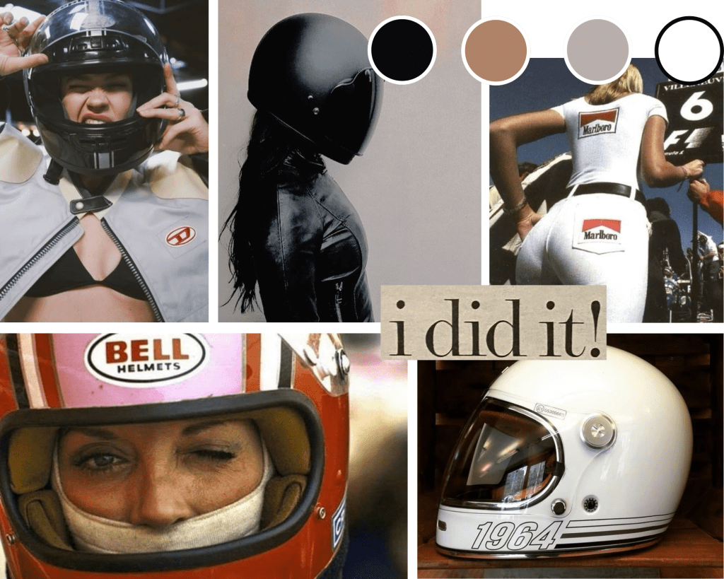La velocidad no es solo adrenalina: es un acto de fé en uno mismo. Este moodboard captura la esencia de quienes entienden que ponerse un casco es mucho más que protección: es declararse invencible, libre y dueño de su historia.