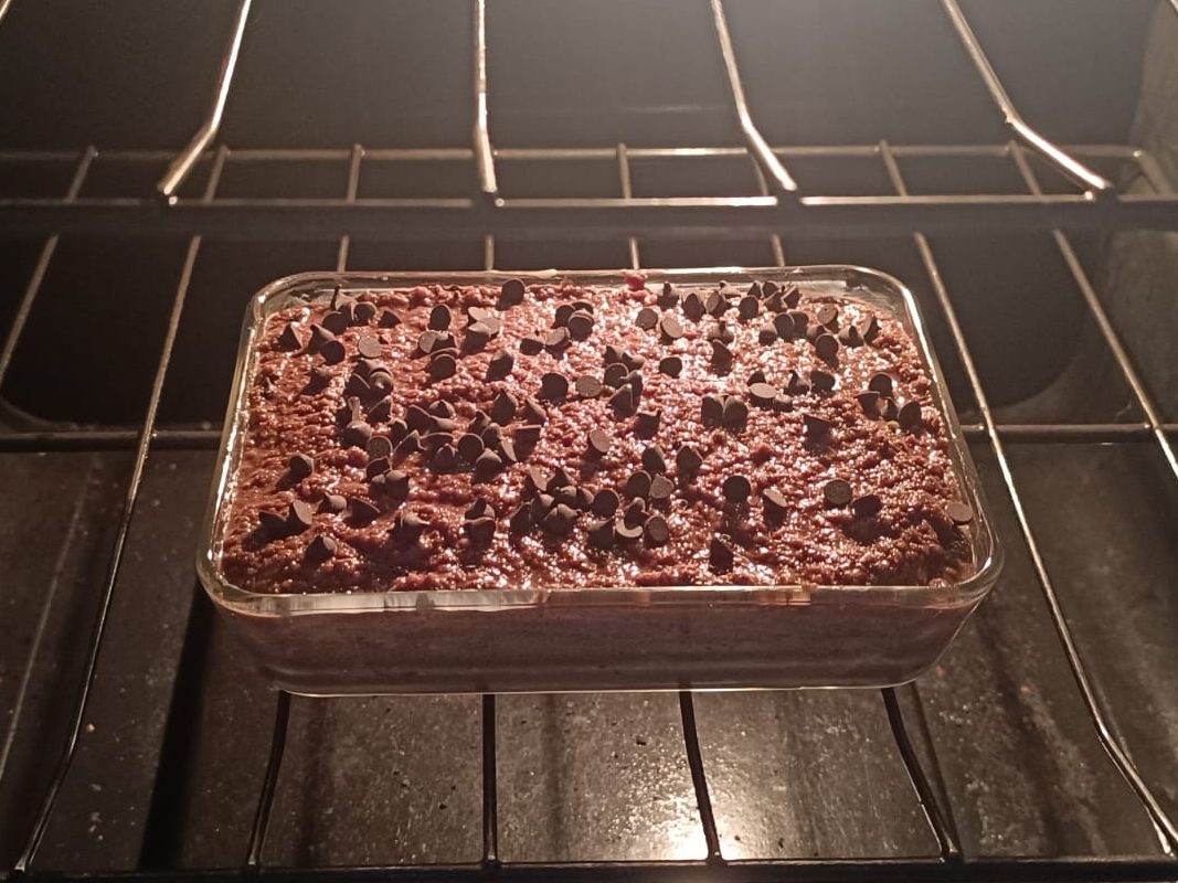 - Hornear a 180 °C (350 °F) durante 30 a 40 minutos, o hasta que al insertar un cuchillo en el centro, salga limpio.
